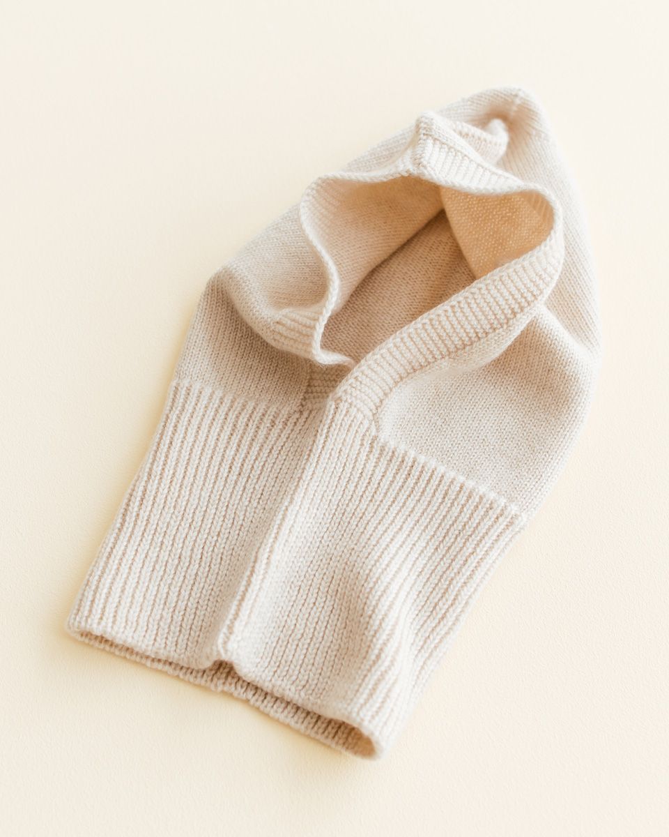 Cream HVID balaclava voor kinderen van 1 tot 3 jaar, een heerlijk zachte en warme naadloze bivakmuts.  Dankzij de merino wol is de balaclava geschikt voor kinderen met een gevoelige huid. Precies wat je zoekt om het hoofd, nek en oren van je kinderen warm te houden!