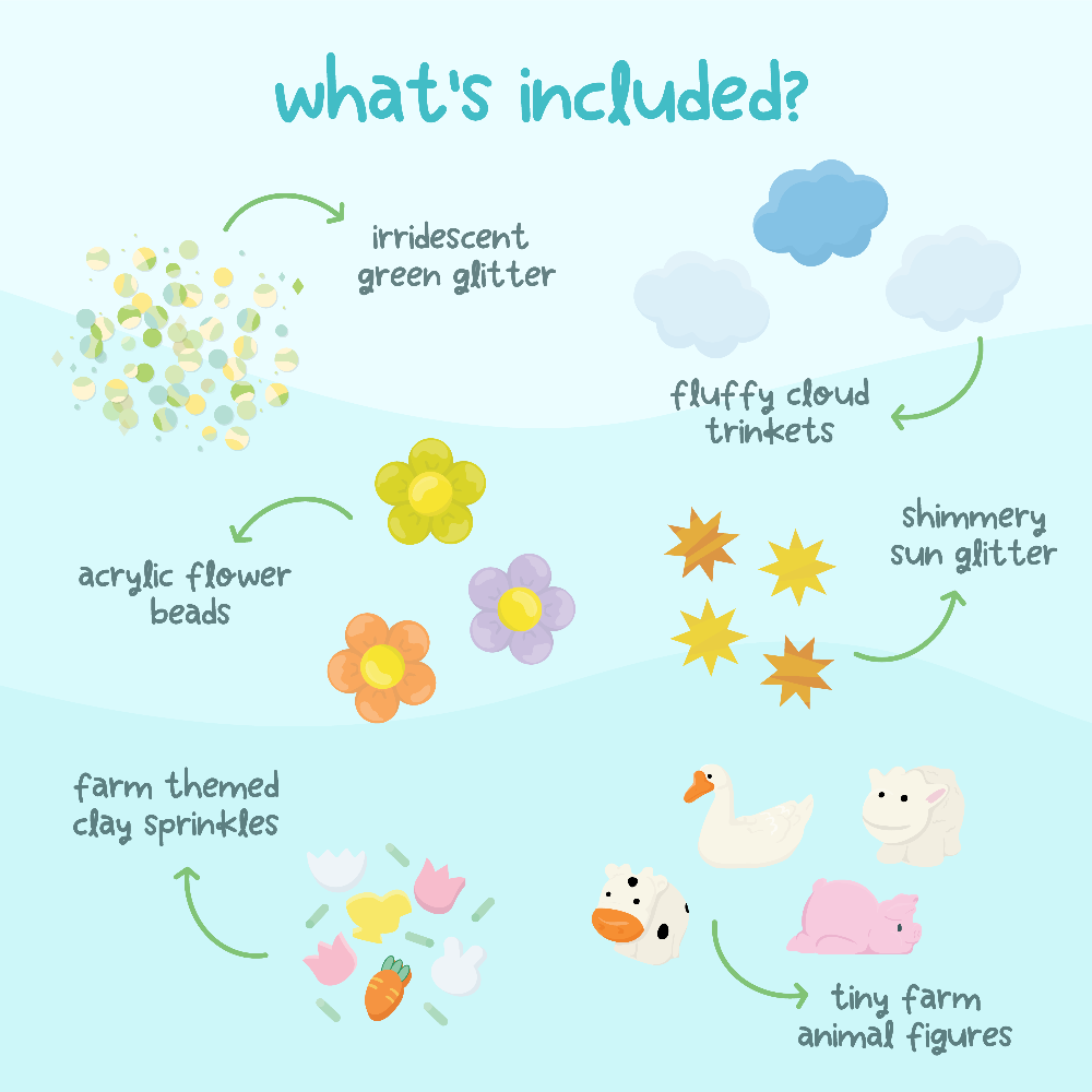 Glo Pals fun fillers maken sensorisch spelen nog leuker! De glitters, figuurtjes en kralen met boerderij thema maken je zintuigelijke spel nog interessanter en zorgen voor urenlang speelplezier. Perfect te combineren met de sensory jar van Glo Pals.