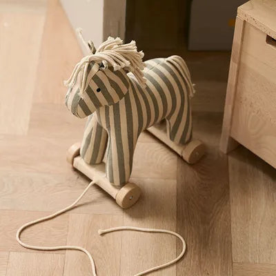 Yihaa, stijg maar op, trekpaard Sam van Kids Concept is altijd klaar voor een wandeling. Met zijn bijzondere gestreepte vacht is Sam het beste paard van stal!